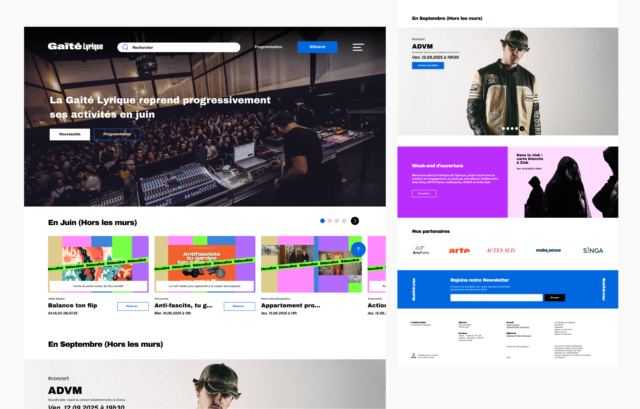Dans le cadre d’un projet d’école, j’ai travaillé sur la refonte de l’interface utilisateur du site de la Gaîté Lyrique, un lieu culturel parisien dédié aux arts numériques et aux musiques actuelles. L’objectif était d’améliorer la lisibilité, la navigation et l’expérience utilisateur globale. Le projet s’est particulièrement concentré sur la page programmation, afin de rendre le parcours d’achat plus clair, plus intuitif et plus efficace pour les utilisateurs souhaitant réserver un événement.